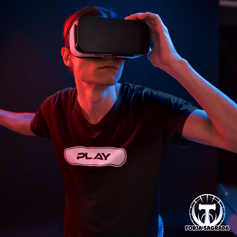 No esperes más para llevar contigo una pieza de ropa que hable de tu pasión por los videojuegos. Visita nuestro sitio web www.forjasagrada.com y adquiere esta camiseta negra con letras 'Play'. Ya sea para ti o como regalo para alguien especial, esta camiseta será sin dudas un éxito que resonará con fanáticos del gaming. ¡Haz clic ahora y conviértela en tu nueva favorita!
