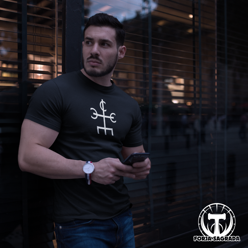 Si eres amante de las runas, el ocultismo o simplemente aprecias la belleza de los diseños cargados de historia, esta camiseta es perfecta para ti. Para más información sobre el significado de este y otros símbolos, visita www.forjasagrada.com.
