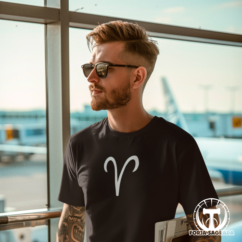 La camiseta negra con el símbolo de Aries, diseñada especialmente para hombres, combina estilo, comodidad y significado en una sola prenda.